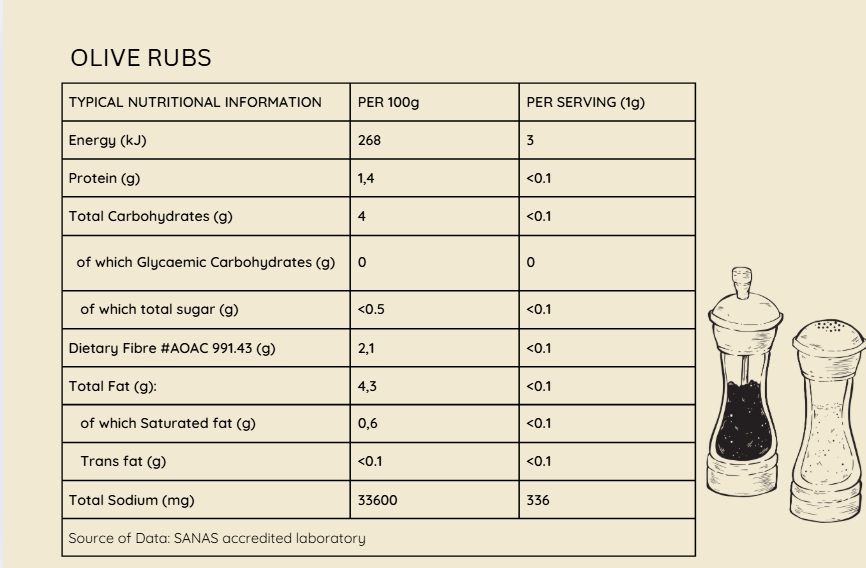 Recipes & Nutritional value: Rubs & Sundried Olives